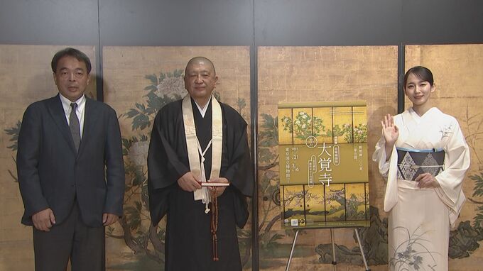 また展覧会の見どころについて″門跡寺院ということで、天皇家との縁も深いことから、豪華な形で皆さまに伝わると思います。例として100面以上の障壁画が集められ、展示室の四面全体が障壁画で埋め尽くされるという経験は私もまだ、そんな空間を体感した事が無いので楽しみでもありますし、またと無い機会となりますので皆さまには、ぜひ楽しんでいただきたいです″とアピールしました。