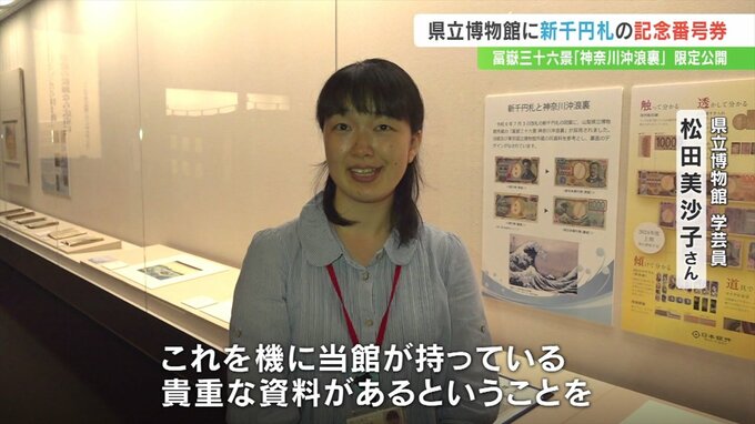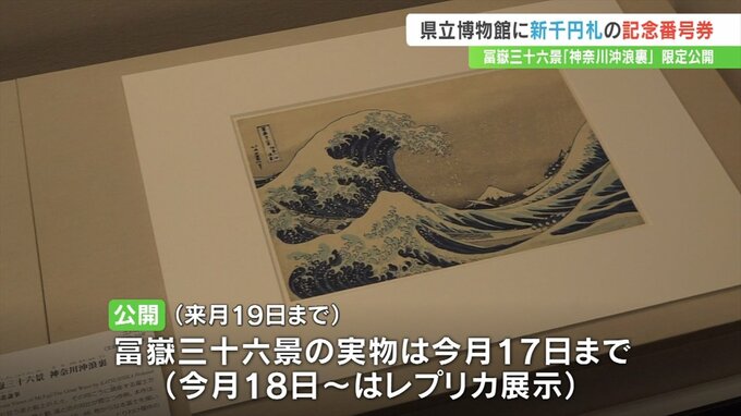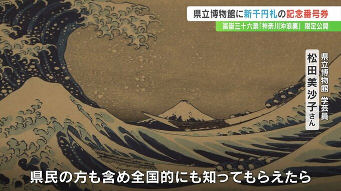 県立博物館には、これを記念し「9番」の新紙幣が贈呈され、4日から作品と新紙幣の公開が始まりました。