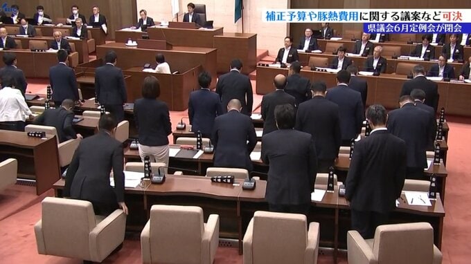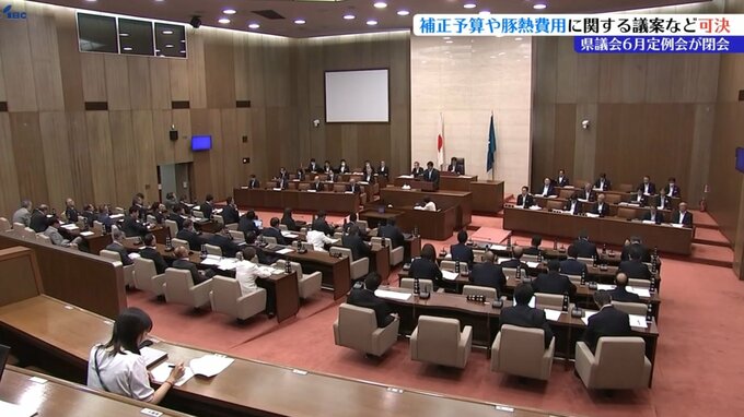 最終本会議では、2024年2月に発生した大雪などによる災害復旧費用17億4500万円を含む、総額およそ20億3600万円の一般会計補正予算案や、豚熱の防疫処置にかかった5億5000万円を知事の専決処分にしたことなど、14の議案の採決が行われ、全て可決されました。