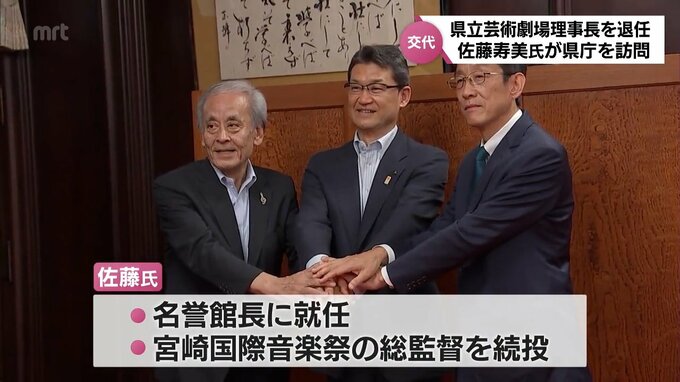 およそ10年半にわたって宮崎県立芸術劇場の理事長と館長を務めてきた佐藤寿美氏が、先月28日付けで退任しました。4日は後任の松坂千尋氏とともに県庁を訪れ、河野知事に理事長と館長の交代を伝えました。現在75歳…