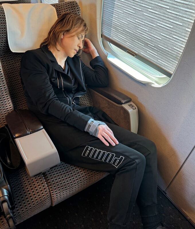 4日、X JAPAN のYOSHIKIさんが自身のSNSを更新し、新幹線の車内で眠る姿を投稿しました。