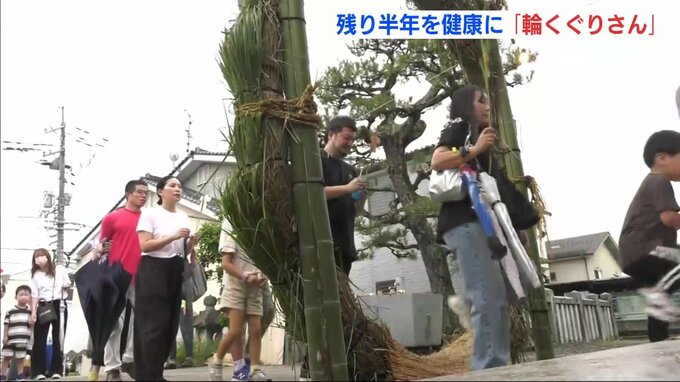 茅でできた輪をくぐって、ことし残り半年の健康を願う祭りが、広島県三次市で開かれました。三次市にある厳島神社です。午後6時に祭りが始まると、「茅の輪」をくぐるための長い列ができました。「輪くぐりさん」…