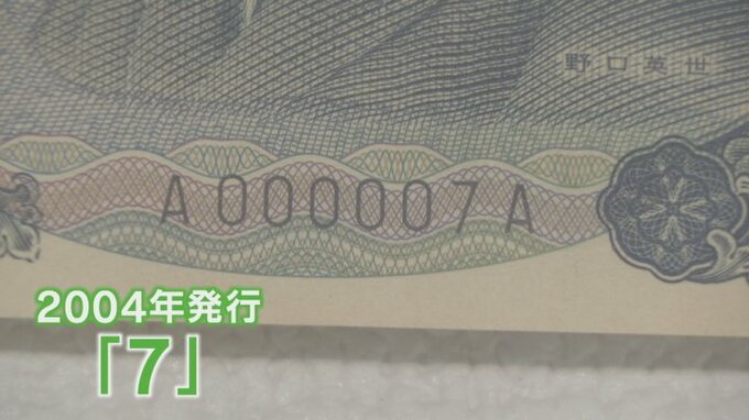 山梨県立富士山世界遺産センターで展示が始まったのは、20年前の発行当時に日本銀行から贈られた「7」と、最終製造番号直前の「299996」という番号が書かれた旧1000円札です。