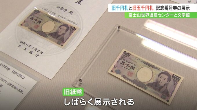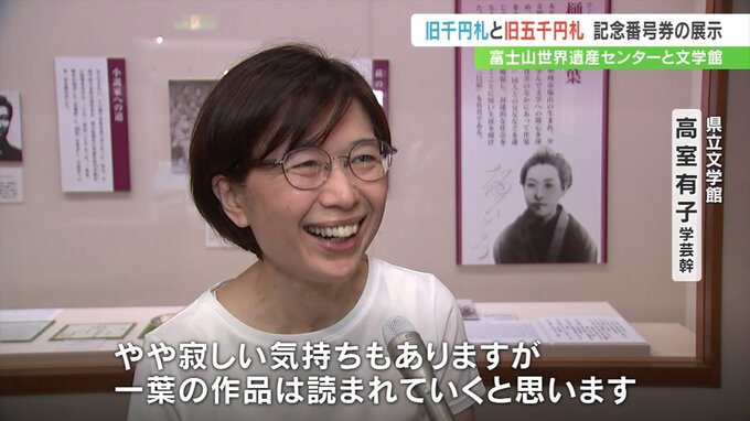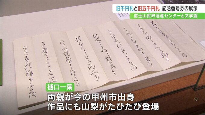 一方、甲府市の県立文学館で5日始まったのは旧5000円札の展示。