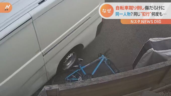 神奈川県川崎市の住宅街で、繰り返し自転車を蹴り倒される被害が起きています。その行動はエスカレートし、自転車は傷だらけの状態に。持ち主が困惑する事態になっています。