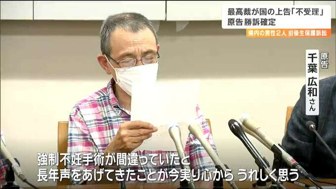旧優生保護法により不妊手術を強制されたとして国に賠償を求め、宮城県内の男性2人が高裁で勝訴した裁判について、最高裁判所は、4日付けで国側の上告を受理しない決定をし、原告2人の勝訴が確定しました。