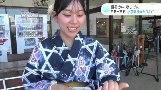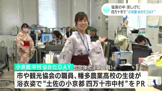 暑さの中、観光客や市民に“土佐の小京都”らしい風情を感じてもらおうと高知県四万十市で市や観光協会の職員らが浴衣姿で業務を行いました。