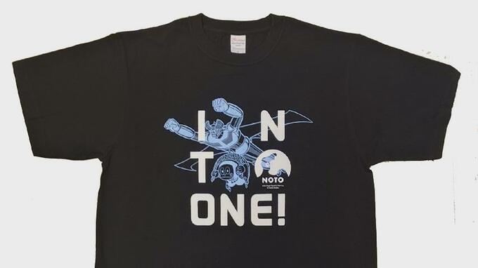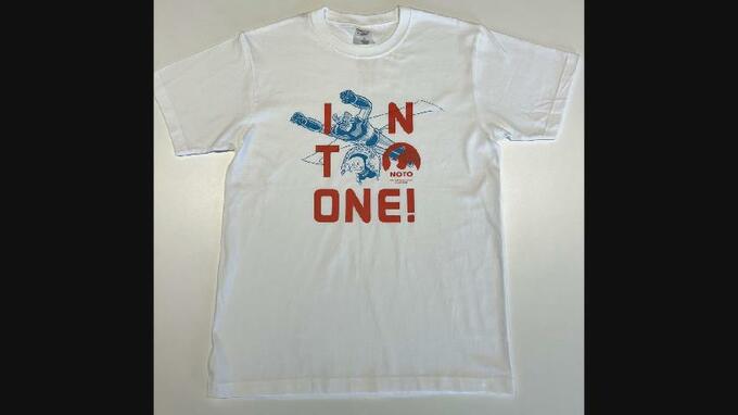 Tシャツには、「INTO ONE!」=「ひとつに!」というメッセージが込められていて、石川県輪島市出身の漫画家・永井豪さんの「マジンガーZ」と富山県氷見市出身の漫画家・藤子不二雄Aさんの「忍者ハットリくん」が一緒にデザインされています。