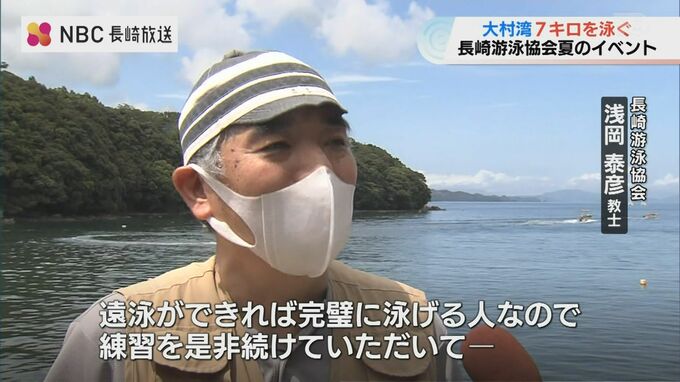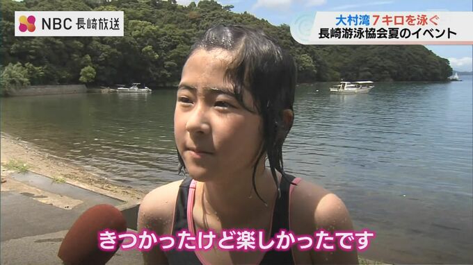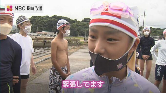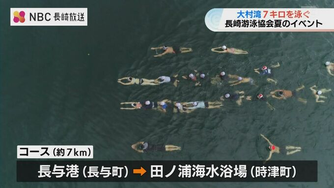今回は、小学4年生から中学2年生の男女17人が、長与港から時津町の海水浴場までおよそ7キロの遠泳に挑戦。
