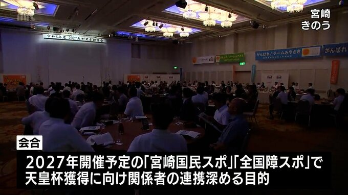 3年後に迫った宮崎国民スポーツ大会への士気を高めようと県内の市町村やスポーツ関係者らが集まった会合が宮崎市で開かれました。会合は、2027年に開催予定の「宮崎国民スポーツ大会」、「全国障害者スポーツ大会…