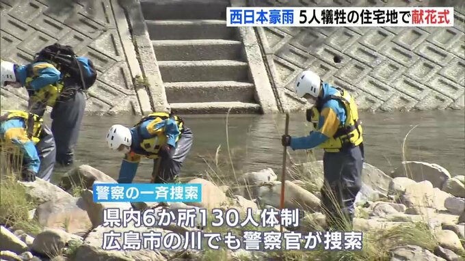 西日本豪雨の発生から6年を迎えた6日、広島県では行方不明者の一斉捜索が行われました。また、犠牲者がでた広島市の住宅地では遺族らが献花式に参列しました。