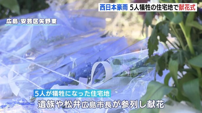 5人が犠牲になった広島市の住宅地では遺族や松井市長が参列し、献花が行われました。