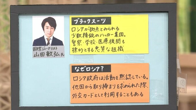 国際ジャーナリストの山田敏弘さんは「ロシアが拠点とみられる少数精鋭のハッカー集団。警察・学校・医療機関も標的とする悪質な組織」と指摘します。