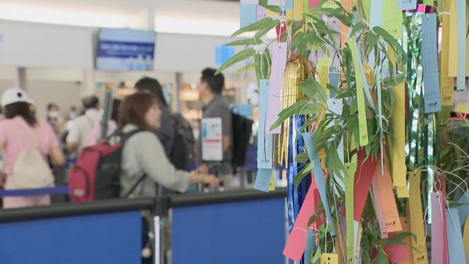 国内線のチェックインカウンターでは、職員が愛知県の伝統工芸品 有松絞の浴衣に身を包み乗客を出迎えたほか、乗客たちはカウンターの側に飾られた笹にそれぞれの願い事を書いた短冊を飾り付けました。