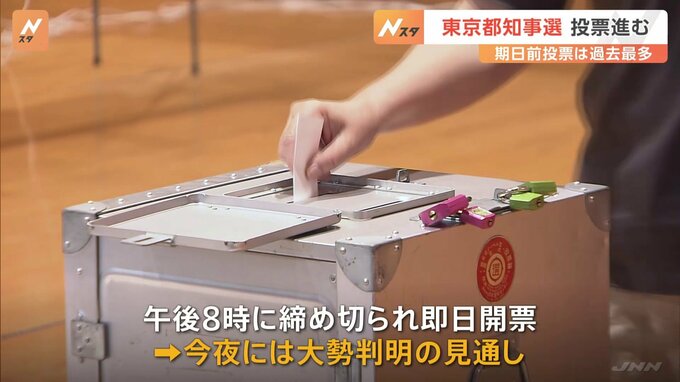 過去最多の56人が立候補した東京都知事選挙の投票が、けさから行われています。午後8時に締め切られた後、即日開票され、今夜には大勢が判明する見通しです。小池百合子知事の任期満了に伴う今回の選挙には、過去…