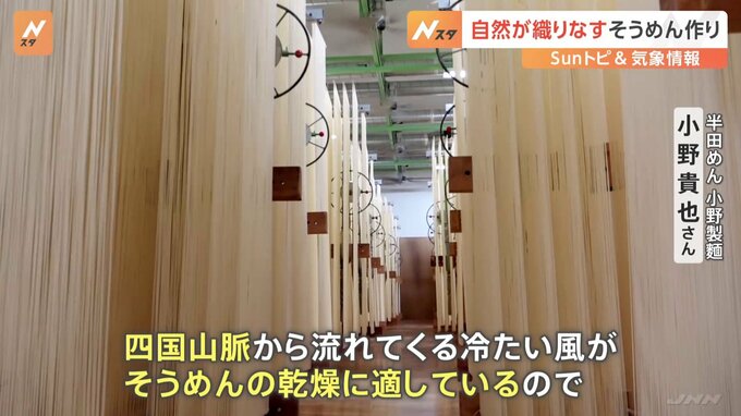 きょう7月7日は、「そうめんの日」。ということで、そうめん作りの現場を取材してきました。徳島県西部にある半田地区は、20軒以上の工房がある全国有数のそうめんの産地です。吉野川の澄んだ水や鳴門海峡の塩など…
