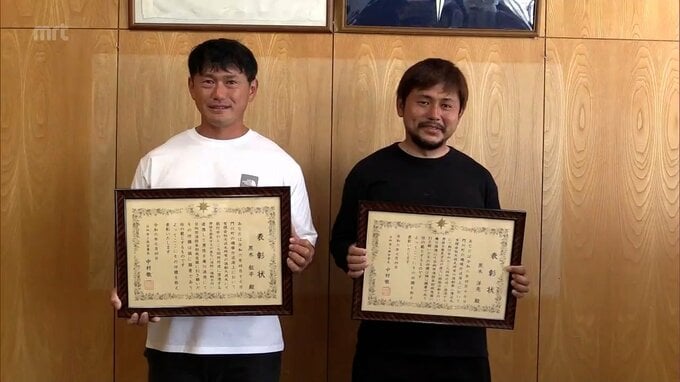 今年4月、宮崎県門川町で海に漂流していた男性を救助した男性2人に日向海上保安署から感謝状が贈られました。日向海上保安署であった表彰式では、中村敬一署長から、いずれも門川町の漁業、黒木航平さんと洋亮さん…