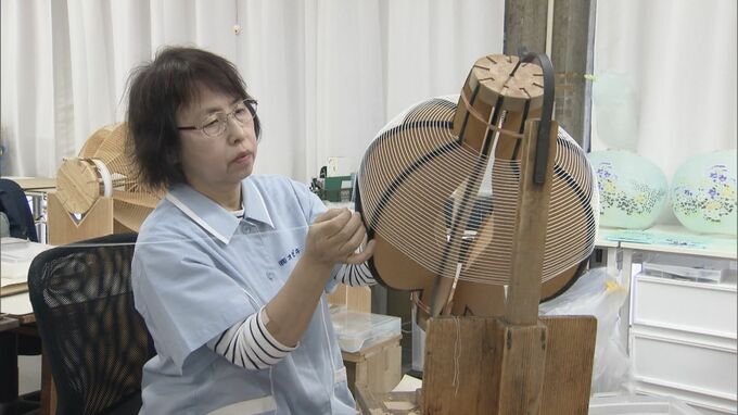 岐阜市の老舗ちょうちん製造会社「オゼキ」では、職人が工程ごとに分担して岐阜提灯を作っています。