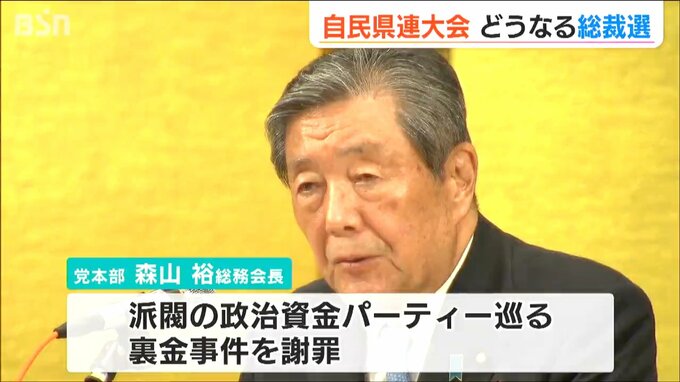 党本部から出席した森山裕総務会長は、自民党派閥の政治資金パーティーをめぐる裏金事件を謝罪したうえで、9月に予定されている自民党の総裁選に触れました。