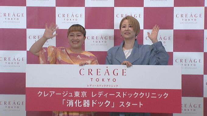 俳優の鈴木砂羽さんと、タレントの丸山桂里奈さんが、クレアージュ東京レディースドッククリニック「消化器ドック」リリース記者発表会に出席しました。