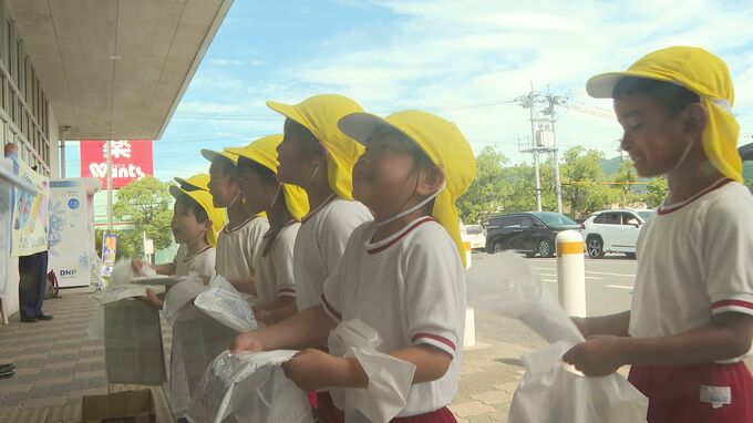 光警察署の署員や市内の浅江南保育園の園児らが、スーパーマーケットを訪れる客に自転車の鍵かけなどを呼びかけるチラシを配りました。県警は、夏休み前に防犯意識を高めてもらおうと、7月8日から2週間を、「夏の自転車盗被害防止対策強化期間」としています。