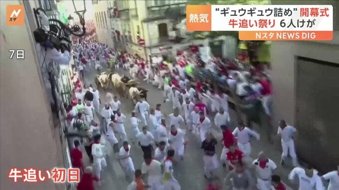ひしめき合う人々で熱気に包まれる市庁舎前の広場。スペイン北部パンプローナで6日、毎年恒例の「サン・フェルミン祭」が開幕しました。「牛追い祭り」として世界的に知られるこの伝統行事。人々は赤いスカーフを…