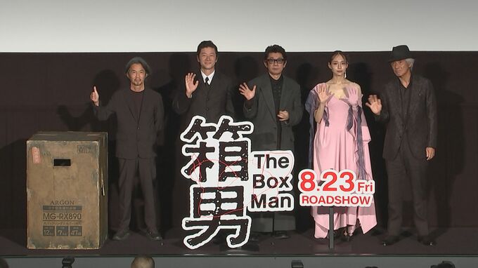 俳優・永瀬正敏さんの主演映画「箱男」ジャパンプレミアが行われ、永瀬さんのほか、浅野忠信さん、白本彩奈さん、佐藤浩市さん、監督の石井岳龍さんが登壇しました。