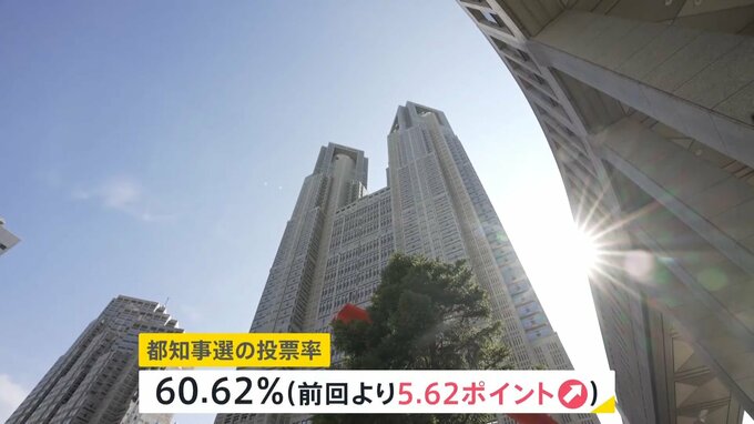 過去最多の56人が立候補した都知事選。投票率は前回を5.62ポイント上回る、60.62%となりました。