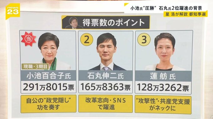 小池氏“圧勝” 石丸氏2位躍進の背景