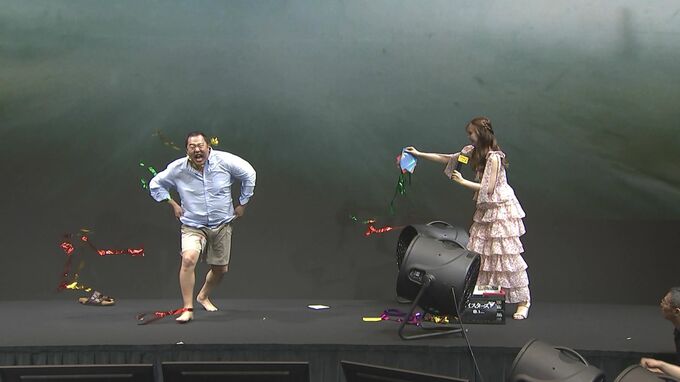 爆風で安村さんの着ていた衣装が全て吹き飛び・・・