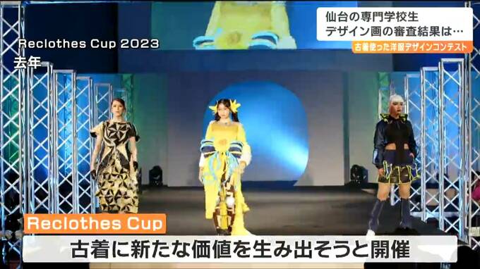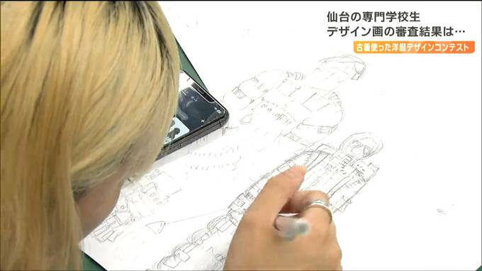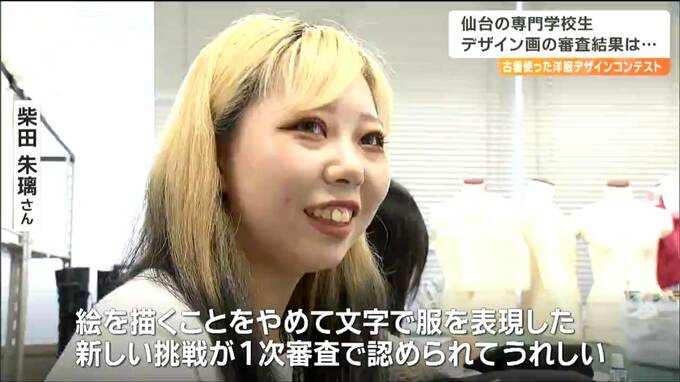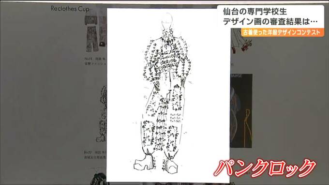 服飾を学ぶ専門学校生による、古着を使った洋服のコンテストが、今年12月に福岡で開催されます。これを前に、仙台の専門学校生らがデザイン画による1次審査に挑み8日、結果が発表されました。