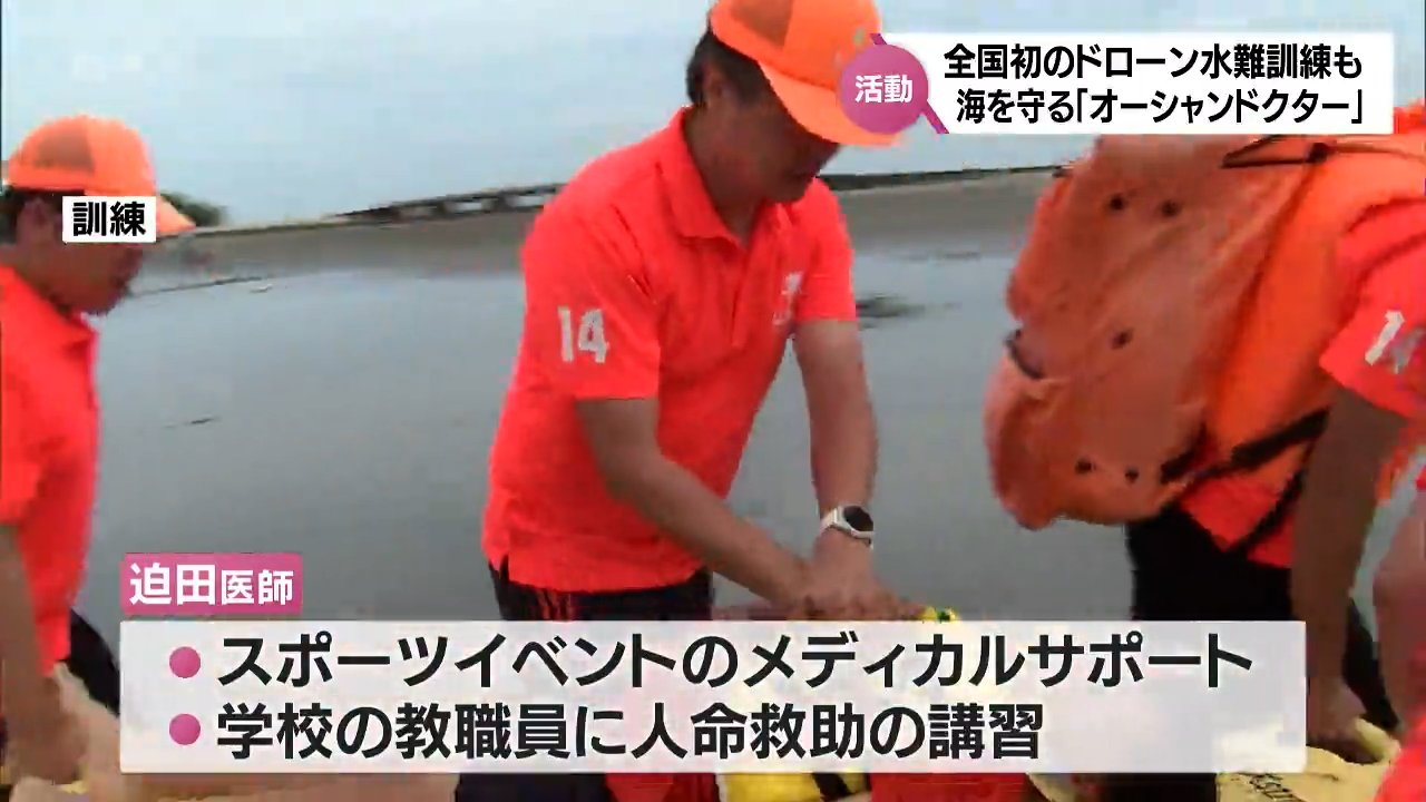 宮崎県内のスポーツイベントでメディカルサポートに入ったり、海の近くにある学校の教職員に人命救助の講習をしたりと「オーシャンドクター」として活動の幅を広げている迫田医師。