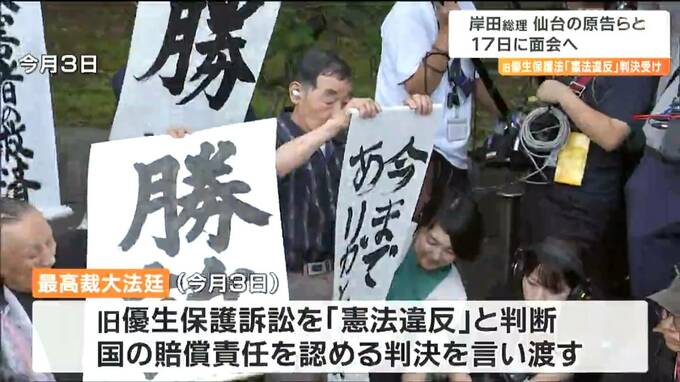 旧優生保護法は憲法違反とした最高裁判決を受け、岸田総理は、来週17日に原告らと面会すると明らかにしました。面会には、仙台の原告も参加する予定だということです。