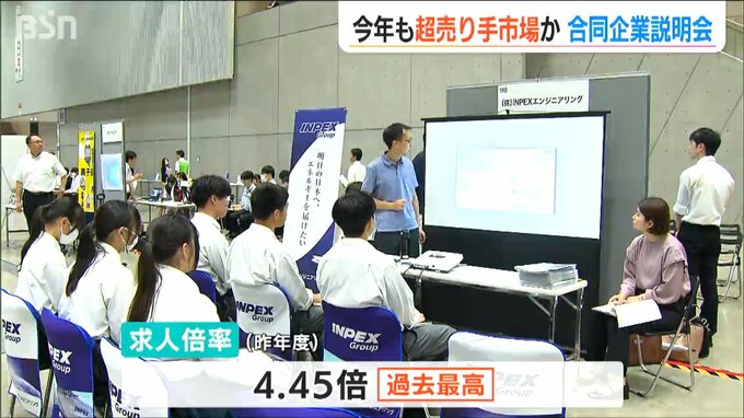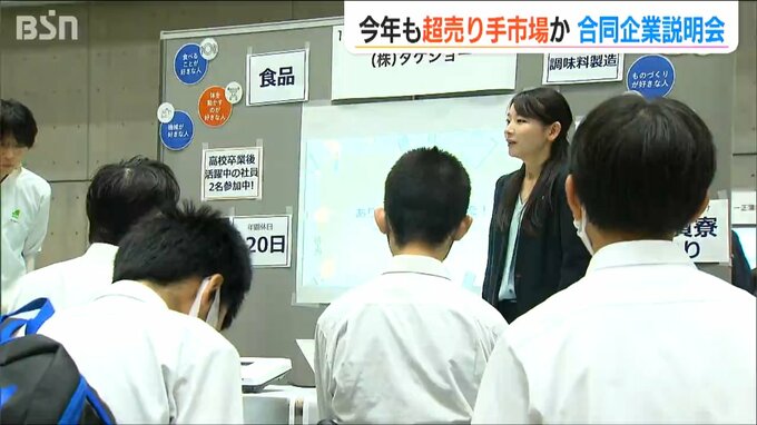 主催したハローワーク新潟によりますと、就職を希望する新潟県内の高校生は今年、10年ぶりに増加。一方、昨年度の1人あたりの求人数を示す求人倍率は4.45倍と過去最高となり、今年も求人数が求職者を大幅に上回る“超売り手市場”が予想されています。