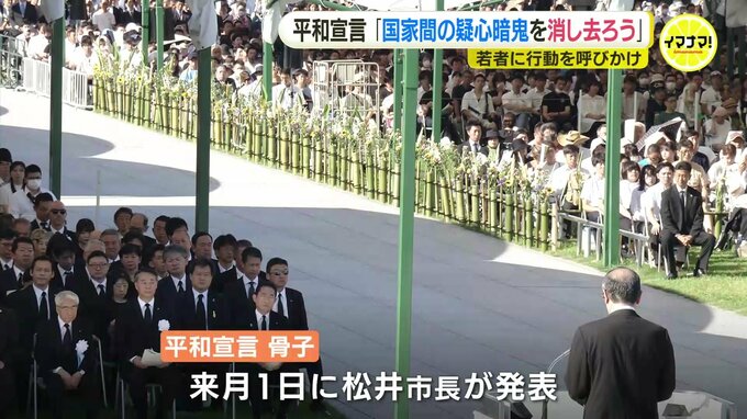 終了後に松井市長はことしの平和宣言について、冒頭でロシアのウクライナ侵攻の長期化やイスラエル・パレスチナ情勢の悪化について問いかける考えを示しました。そして特に若い世代に向けて、国家間で高まっている疑心暗鬼を消し去るための行動を呼びかける方針です。