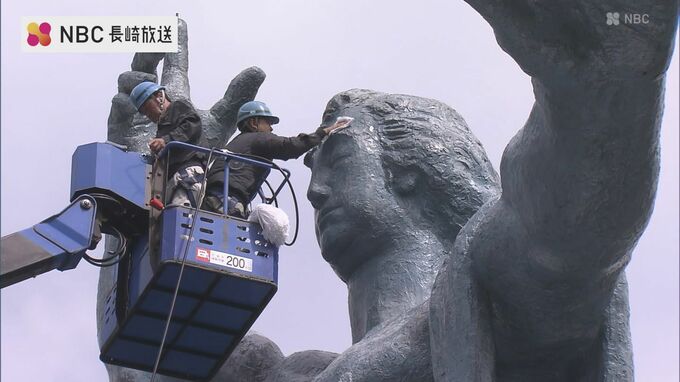 長崎市の平和公園では、来月9日の平和祈念式典を前に、10日午前から平和祈念像の清掃が行われています。長崎市民の平和への願いを象徴する平和祈念像。毎年、8月9日の平和祈念式典前のこの時期に清掃されています。…