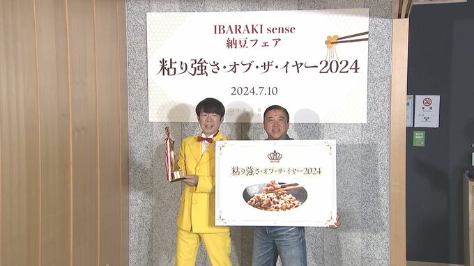 ダンディ坂野さん、スギちゃんが 東京・銀座にある茨城県のアンテナショップで開催された納豆PRイベントに登壇。芸能界で ”粘り強く” 活躍する2人が「粘り強さ・オブ・ザ・イヤー2024」を受賞しました。