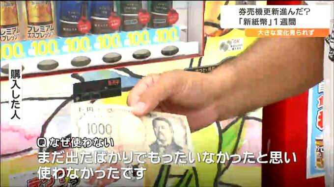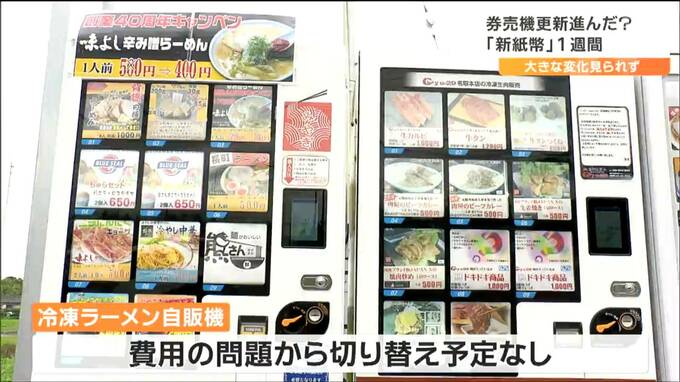 新しい紙幣の発行が始まってから10日で1週間です。1週間が経ち、券売機などの更新は進んでいるのでしょうか。自動販売機と飲食店を取材しました。