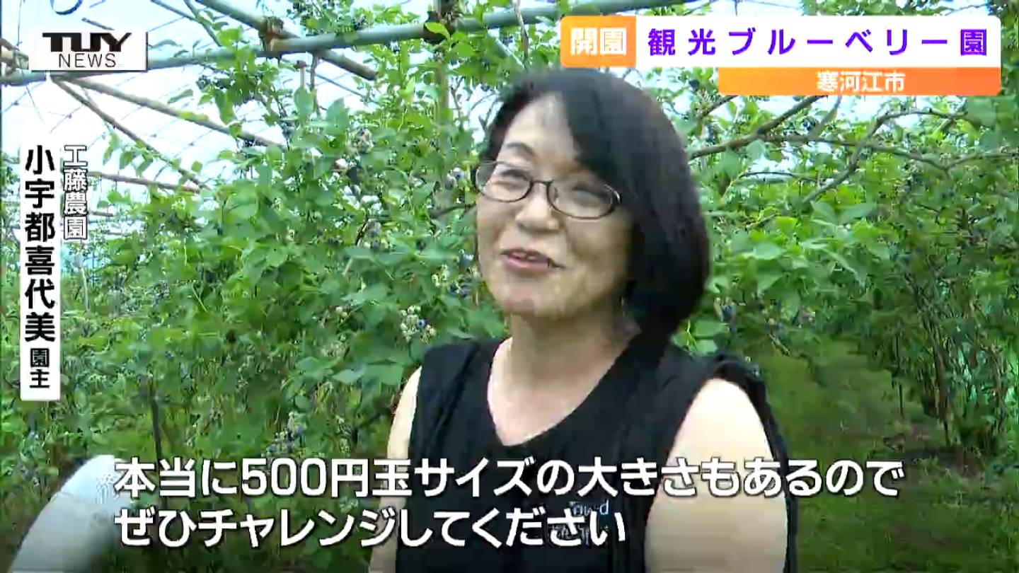 寒河江市できょう、観光ブルーベリー園がオープンしました。今年の暑さで色づきも一層よく、豊作だということです。