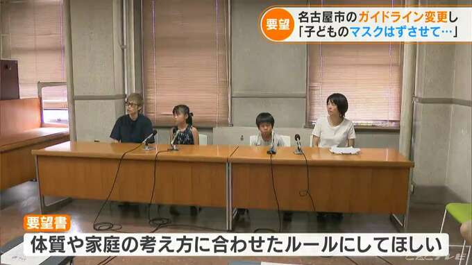 石井さんたちは、現在名古屋市のガイドラインでは、小学校では基本的に教室や互いの距離がとれない時にはマスクを着用することとなっているが、それは変えるべき。あわせてマスクの着脱判断は家庭に委ねてほしいといいます。