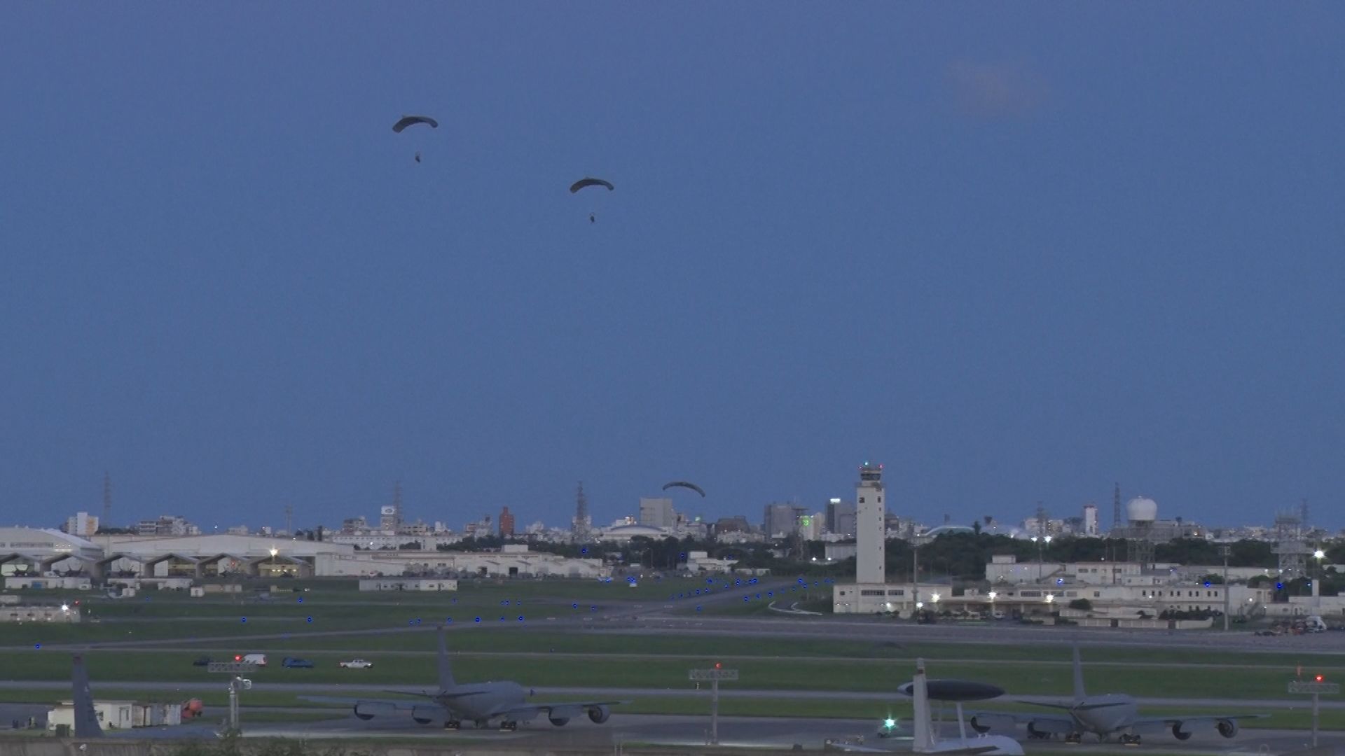 伊江村によりますと2日午後1時ごろから3時ごろにかけて、米軍の航空機から複数の兵士がパラシュートで降下する様子を村の職員が確認したということです。
