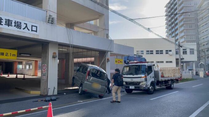 女性は頭部に打撲があるものの意識はあり、発生直後は受け答えもできる状態で本島中部の病院に搬送されたという。今のところ、駐車場施設の破損以外に人的被害などは確認されていない。