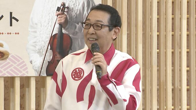 三越のマークが付いた衣装で姿を見せた、さださんは"スタッフが勝手に三越の風呂敷でこの衣装作っちゃった(笑)一点物なので高いよ"と、ニッコリ。