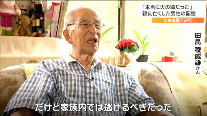 仙台空襲を経験した田島稜威雄さんは、当時を「戦争に勝つものだと思っていた」「逃げるのはひきょうだった」と振り返っていましたが、空襲を経験し、いまでは「命が一番大切で、ただ安全なところに逃げる」と強く思うようになったということです。