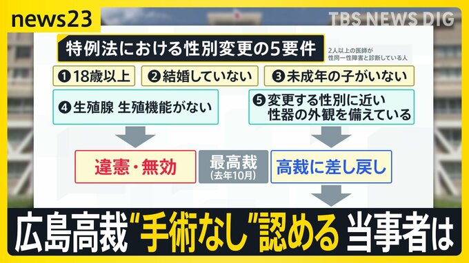 戸籍上の性別を変えるために必要とされる性器の手術。広島高裁は、手術を受けなくても男性から女性に性別を変更することを認めました。トランスジェンダー当事者たちはこの決定をどのように受け止めたのでしょうか…