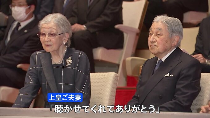 上皇ご夫妻の卒寿、90歳を祝う音楽会がきのう午後、皇居内の音楽ホールで開催されました。きのう午後3時から皇居の「桃華楽堂」で開催された、上皇ご夫妻の卒寿を祝う音楽会。天皇ご一家、上皇ご夫妻、秋篠宮ご夫…