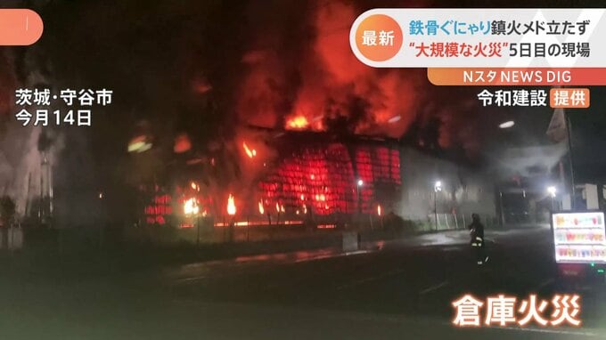 茨城の倉庫火災。発生5日目となる18日も消火活動が続けられていました。現場を取材すると、火災の激しさが浮き彫りになってきます。 グニャリと折れ曲がったドア。壁…
