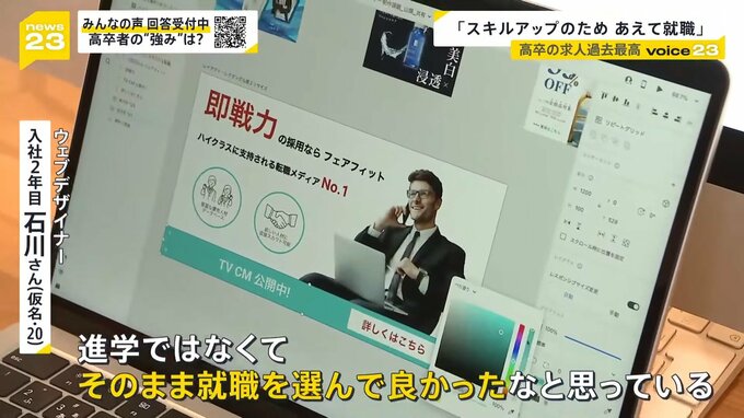 飯田さんは現場でスキルアップするため、進学ではなく就職を選択。こうした考えはウェブデザイナーの石川さんも…
