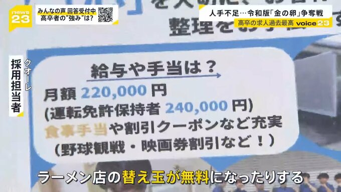 来年春に卒業する高校生の就職活動が今月から本格的に始まりました。就活現場では「厚待遇」「残業なし」「初任給大幅アップ」と企業はあの手この手で高校生の確保に動いています。求人倍率は過去最高を記録。まさに令和版「金の卵」の採用合戦が行われています。