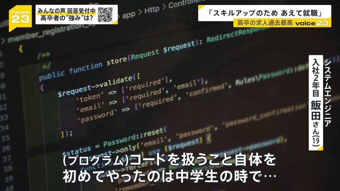 一方、高校生が持つ可能性そのものに注目している企業もあります。こちらのIT企業は社員の半分が高卒です。